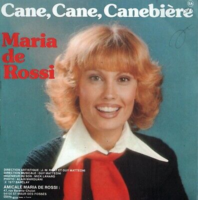 > On clique sur l’image pour le sonEntre deux disques dans l’écurie de RCA, Maria de Rossi signe chez Barclay un premier album dont le titre sent bon la lavande : Du soleil pour la France. On exploite la veine régionaliste avec des titres comme Magali, Un petit cabanon, Les marchés de Provence et bien sûr la Cane Cane Canebière ! On éclaircit encore d’un ton la couleur : blond soleil. Et on opte pour la coupe secrétaire de mairie de bonne humeur, un peu déstructurée : frange lisse et bouclettes latérales mi-longues.